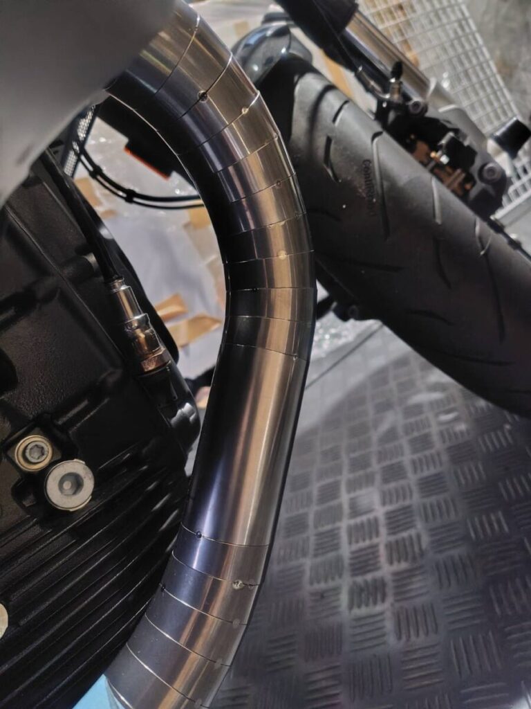 In this second installment, we begin with the fabrication of the exhaust header. We’ve selected a pipe diameter of 50mm with a wall thickness of 1mm. The bends are constructed using a pie-cut design, precisely measured and cut with laser technology. Naturally, the material offers excellent heat resistance, making it perfectly suited for demanding track conditions.