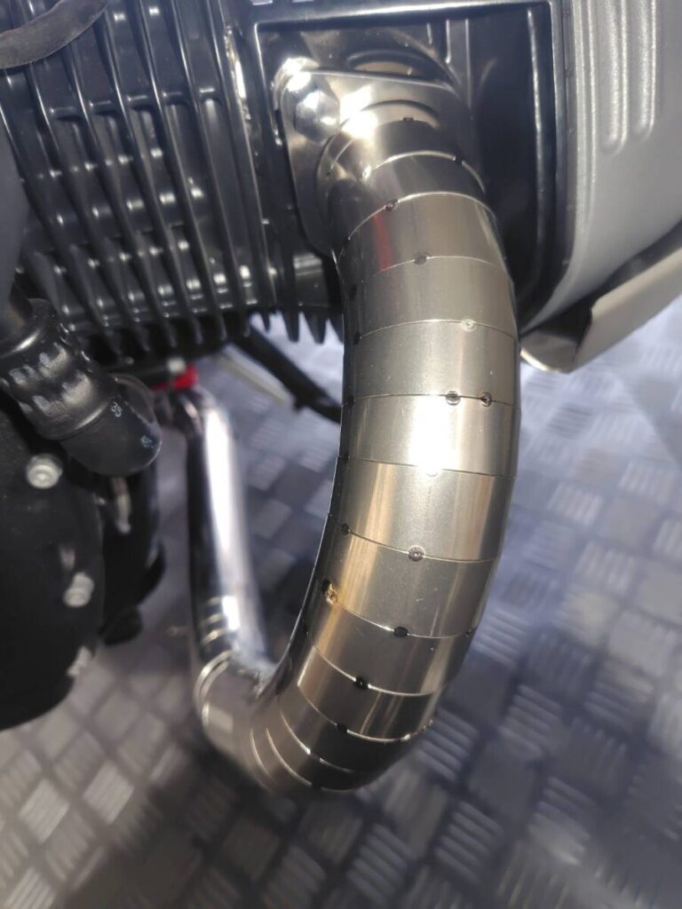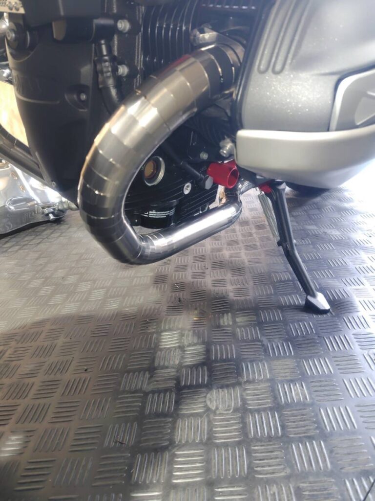 ↓With a boxer twin engine, the left and right cylinders are offset front-to-back. As a result, even with equal pipe lengths, the right-side header naturally extends slightly forward—a subtle detail that may be hard to spot in photos.