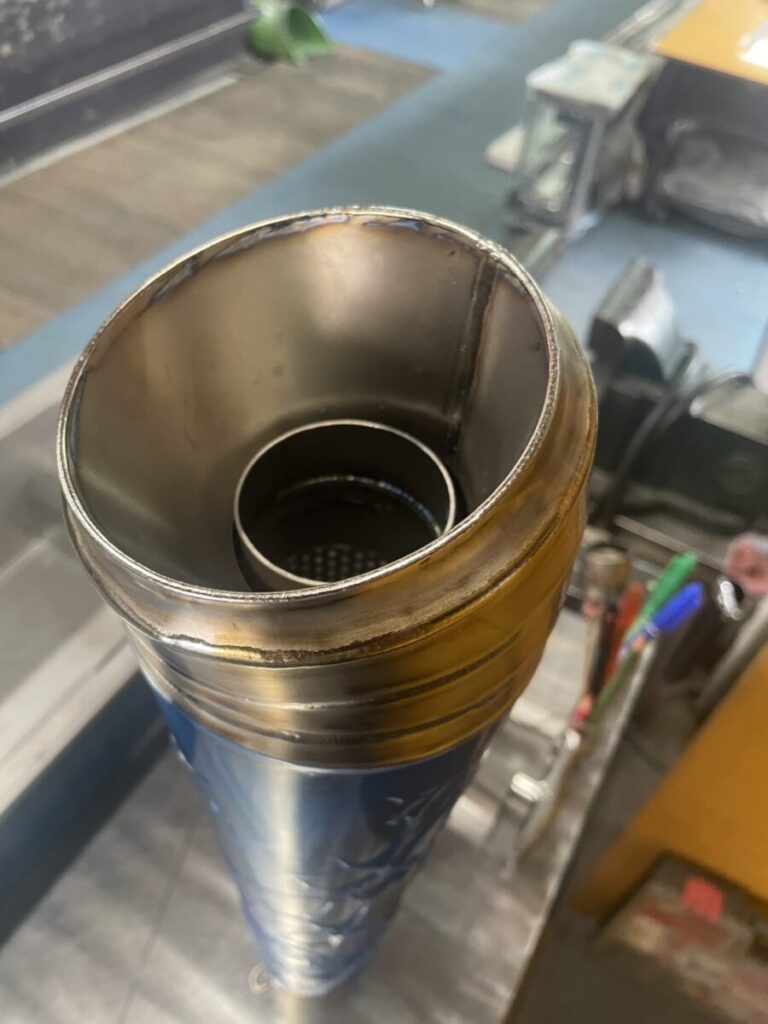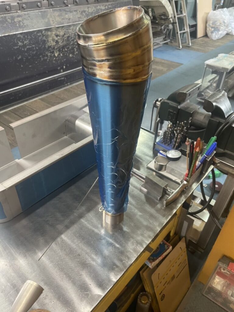 The customer had requested a short megaphone, so we started by processing the tapered silencer.