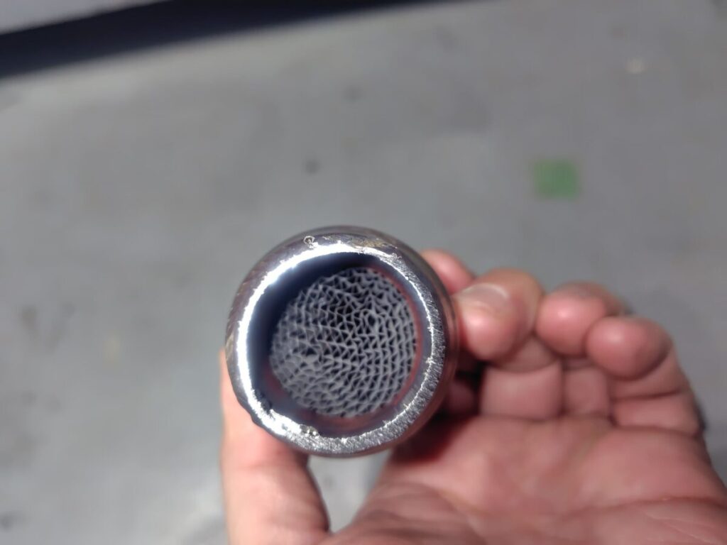 ↑取り除いた触媒。目を凝らしても反対側が見えません。