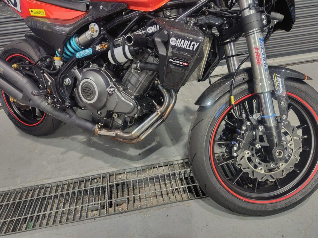 今回の製作では、レース専用仕様として純正マフラー内部の触媒を取り除く加工を実施。